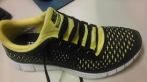 Why? My custom creations were late in arriving. The minimalist cushioning on the old Frees, I’d pounded beyond usefulness. And we were running a race. So on with the Pegasus.